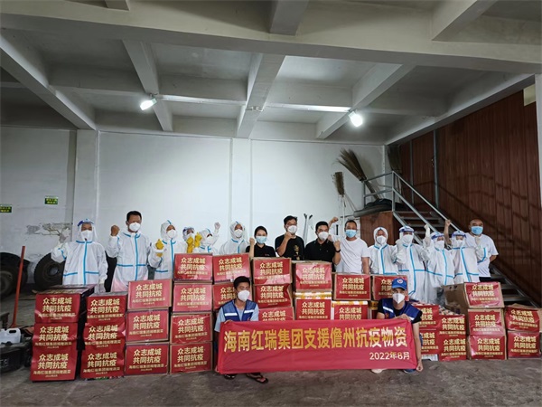 8月16日,红瑞集团火速驰援重点疫区,将1000支消毒液、160个医用防护面罩等消杀防护物资,及水果蔬菜、生活用品等,捐赠给儋州市红十字会指定的环卫公司。