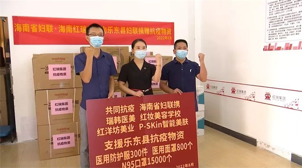 8月19日,在海南省妇联的指导下,红瑞集团向陵水县英州镇、乐东县佛罗镇,共计捐赠30000只N95口罩、600件防护服、1600个医用防护面罩及水果蔬菜等生活用品。据统计,红瑞集团本轮共向海南各市县捐赠十多万元的物资。