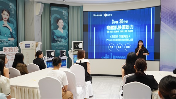 P-SKin科技美肤重磅引入海菲秀项目。海南首发,闪耀全岛!发布会现场,众多达人打卡体验,开启科技美肤之旅。